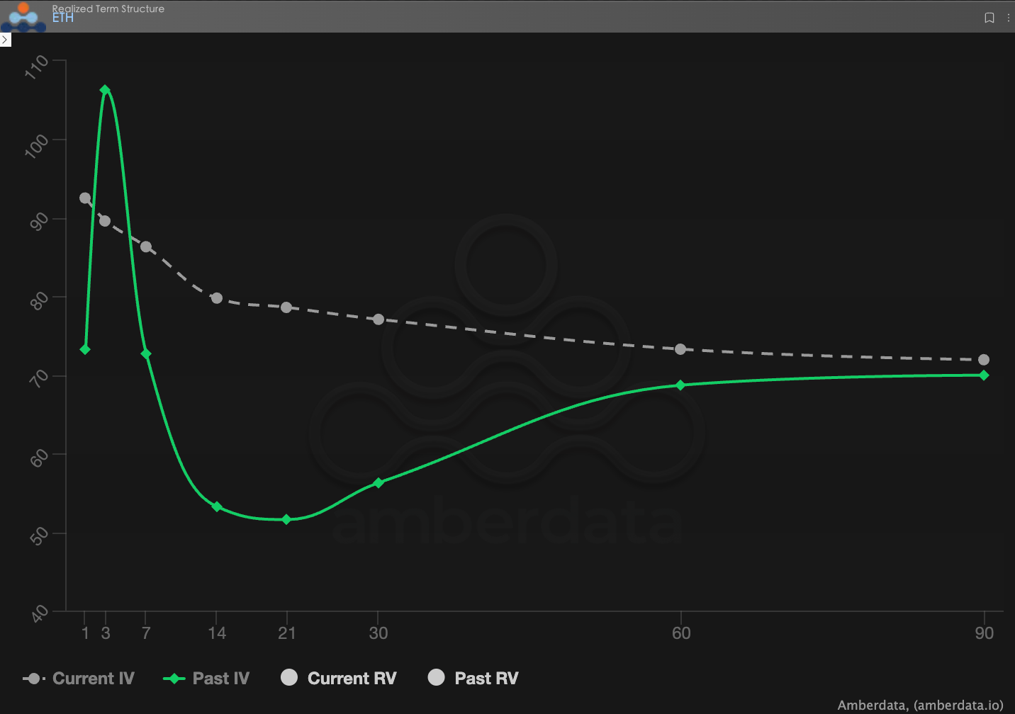 Снижение уровня допуска ошибок в определении направления волатильности значительно уменьшилось: IV находится на высоком уровне и все еще в инверсной структуре, любое новое событие может еще больше усилить волатильность.