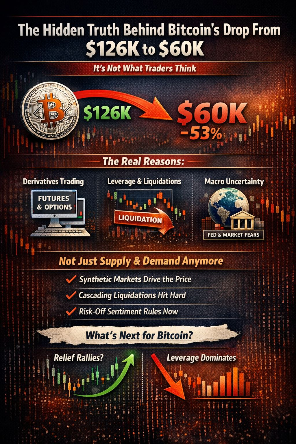 That’s the core reason BTC kept bleeding from $126K to $60K without a dramatic headline event.