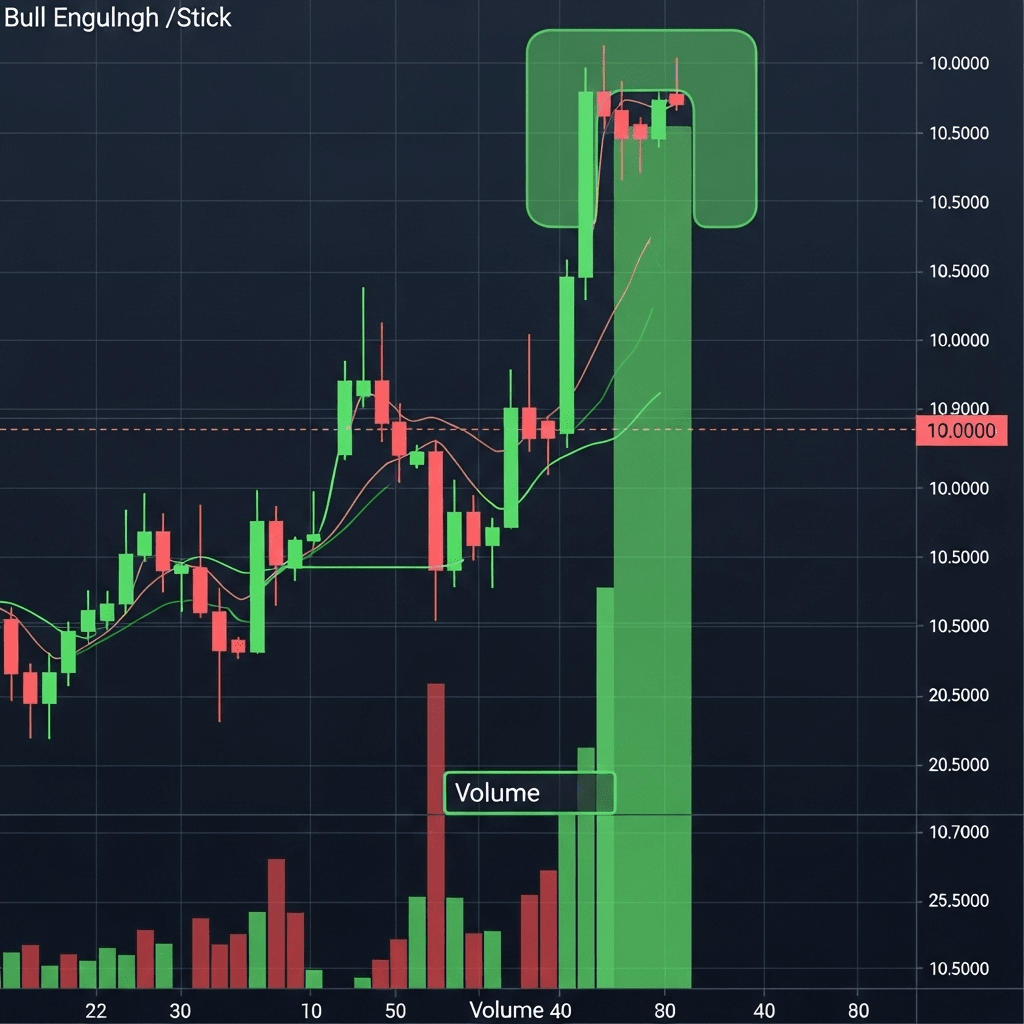 Паттерны поглощения имеют большее значение, когда поддерживаются высоким объемом торгов. Это подтверждает, что изменение контроля подкреплено сильным участием на рынке, а не слабыми колебаниями.
