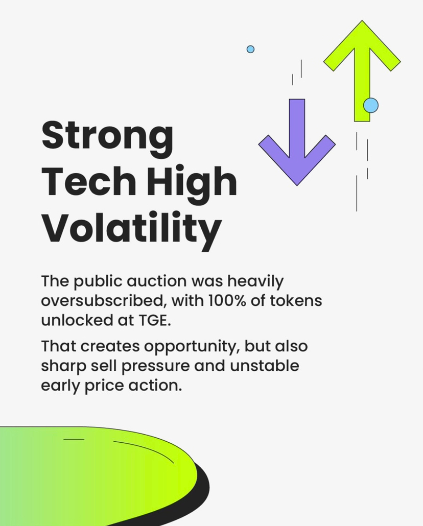 The project launched in early 2026 after a heavily oversubscribed public auction, with all tokens unlocked at TGE. That structure creates opportunity, but also short-term volatility.