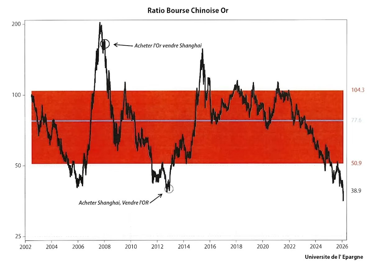 Это означает, что относительно золота акции крупнейших экономик Азии сейчас стоят столько же, сколько они стоили на заре 2000-х, до начала своего бурного роста. Это зона «исторической недооценки».