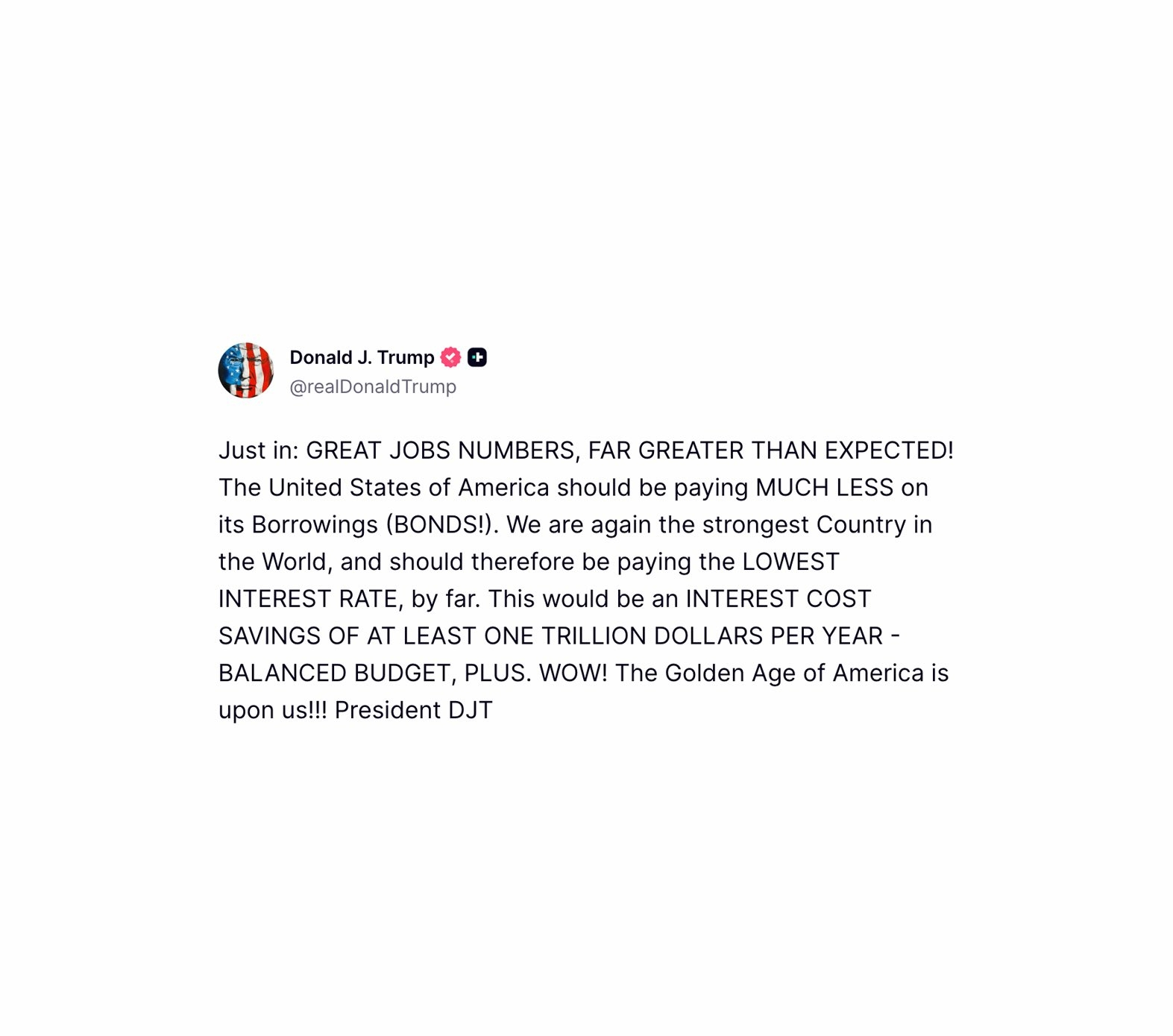 Сильные данные по занятости в США + Трамп настаивает на НИЖНИХ процентных ставках =