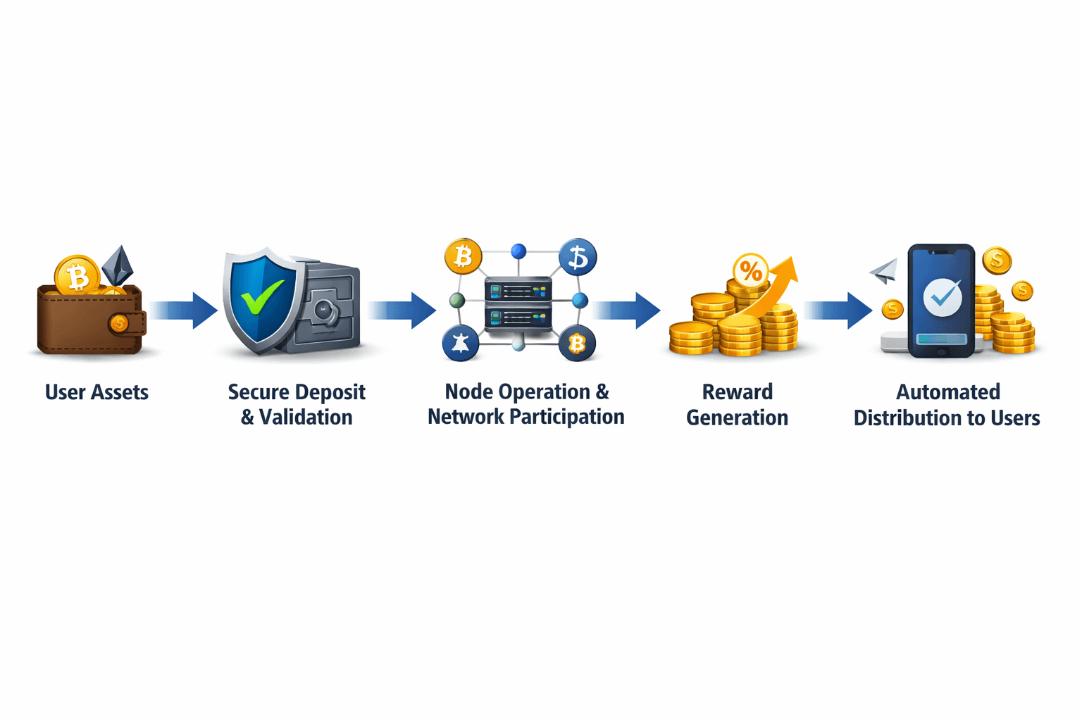 This streamlined workflow highlights Vanary Chain’s efficient staking ecosystem. Once users deposit their assets, the platform securely manages node operations across multiple blockchain networks. Through continuous monitoring and optimization, Vanary Chain maximizes staking yields while minimizing operational risks.