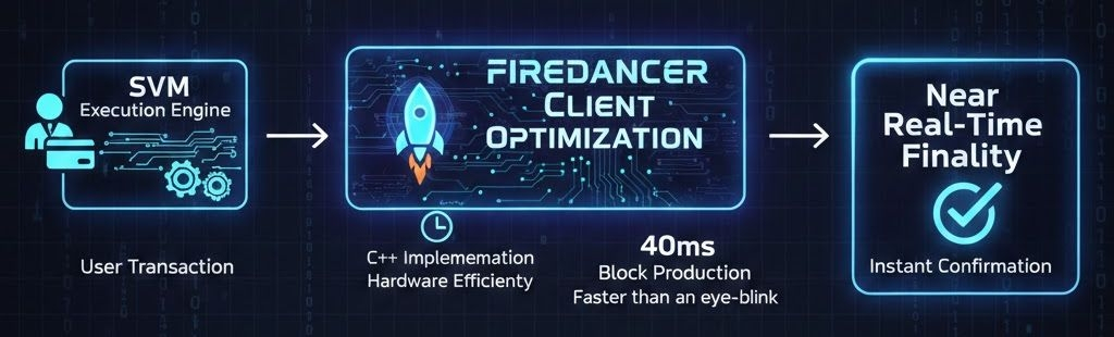 Fogo integrates a customized version of the Firedancer validator client, designed to maximize throughput and reduce latency bottlenecks.