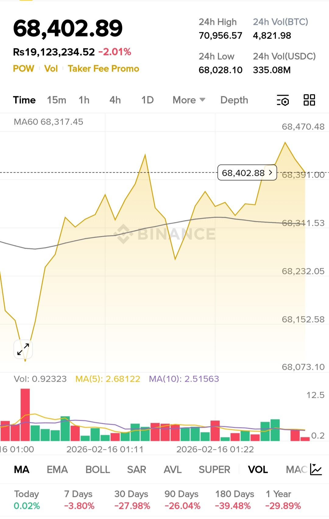 $BTC slips to $68,402 (📉)** — Why the dip? Short-term profit-taking, weak volume, and macro pressure. Key levels: **Support ~ $68,000**, **Resistance ~ $71,000**. Not investment advice — DYOR. #BTC #Bitcoin #Crypto #Trading