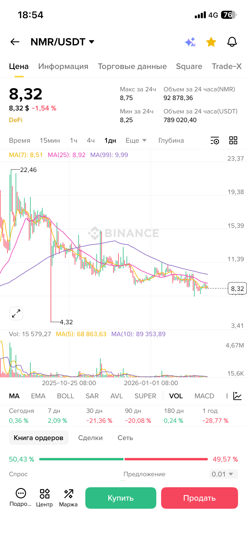График Numeraire ($NMR ) показывает, почему в крипте нужно всегда ставить лимитные ордера на покупку ниже рынка! 👇