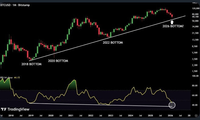 The $60K level is not just horizontal support — it is a liquidity magnet.