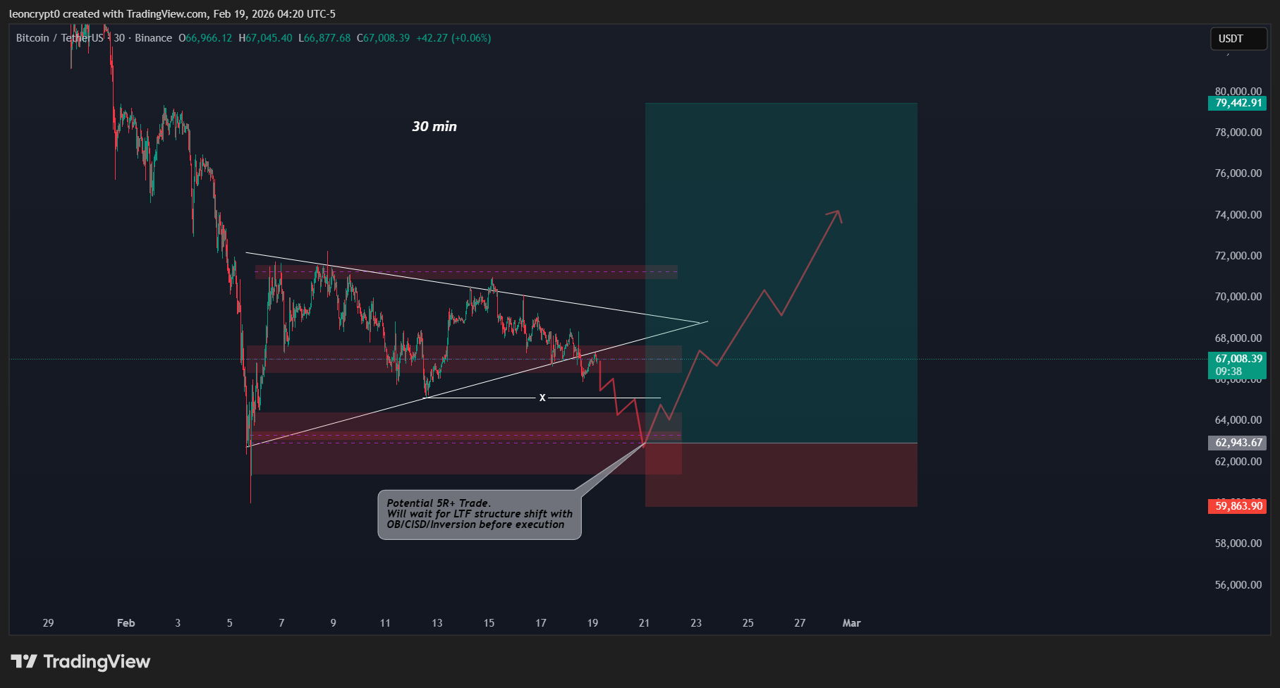 Если BTC уважает эту структуру, я выполню сделки, как объяснено ниже.