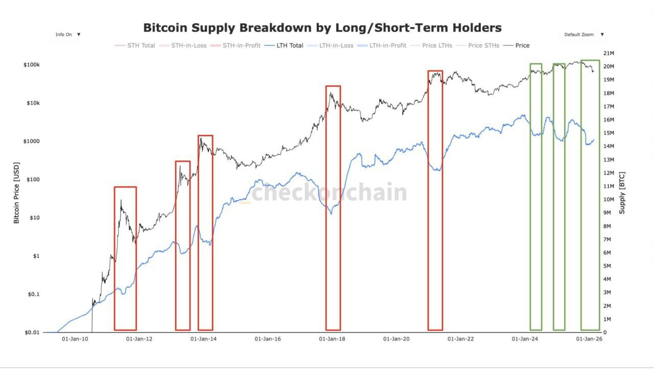🧱 2️⃣ Долгосрочные держатели (LTH) меняют поведение