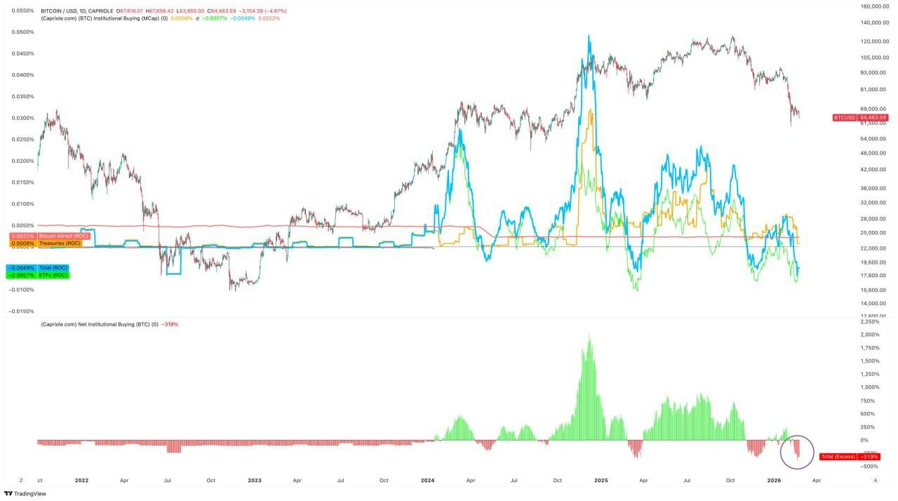 По данным Charles Edwards, на прошлой неделе зафиксирована самая крупная чистая продажа BTC институционалами за всю историю наблюдений.