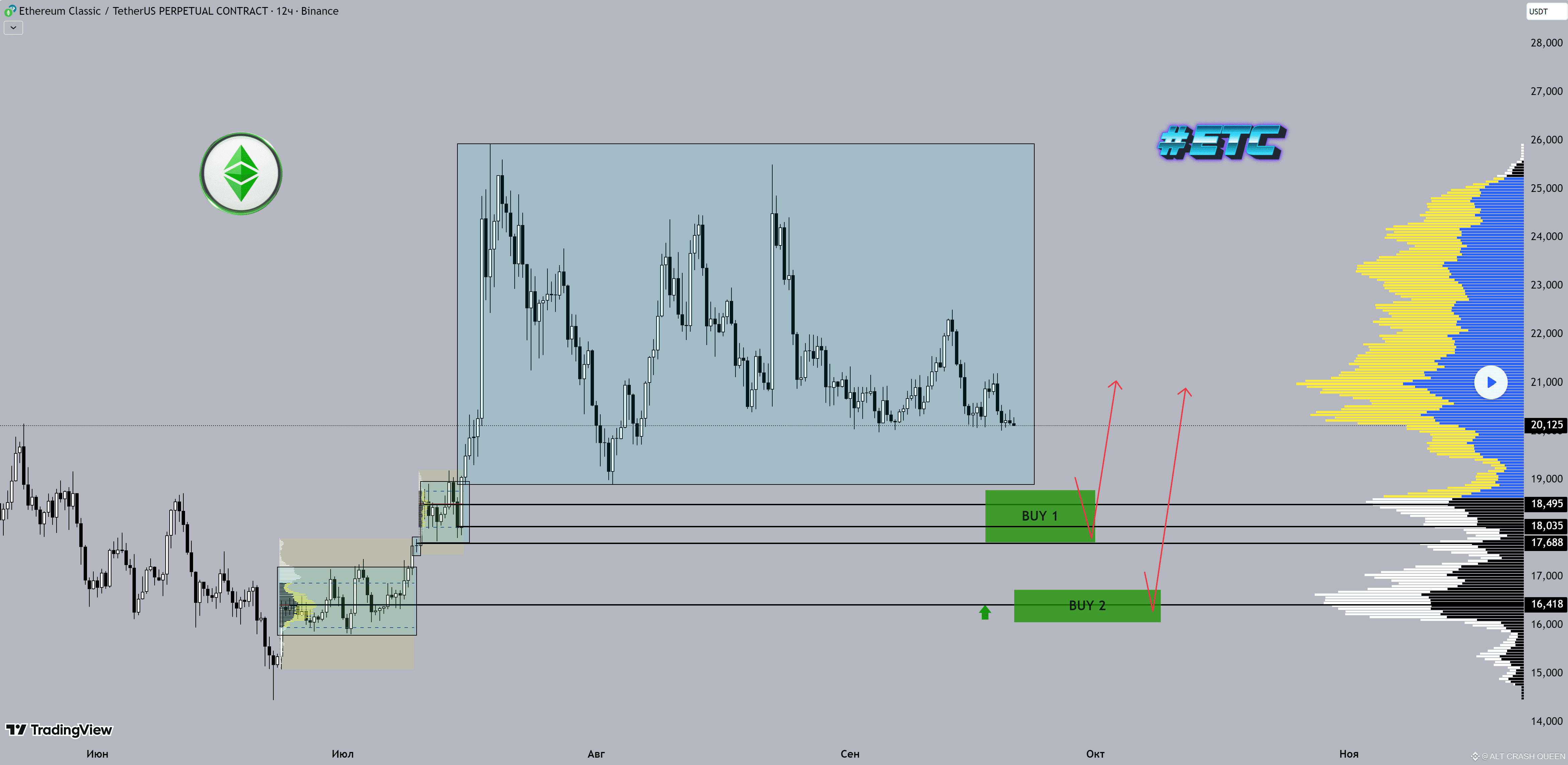 • Первый трейд: лонг $ETC от зоны 18.8–17.8$ (4H TF + MTF внутри структуры)