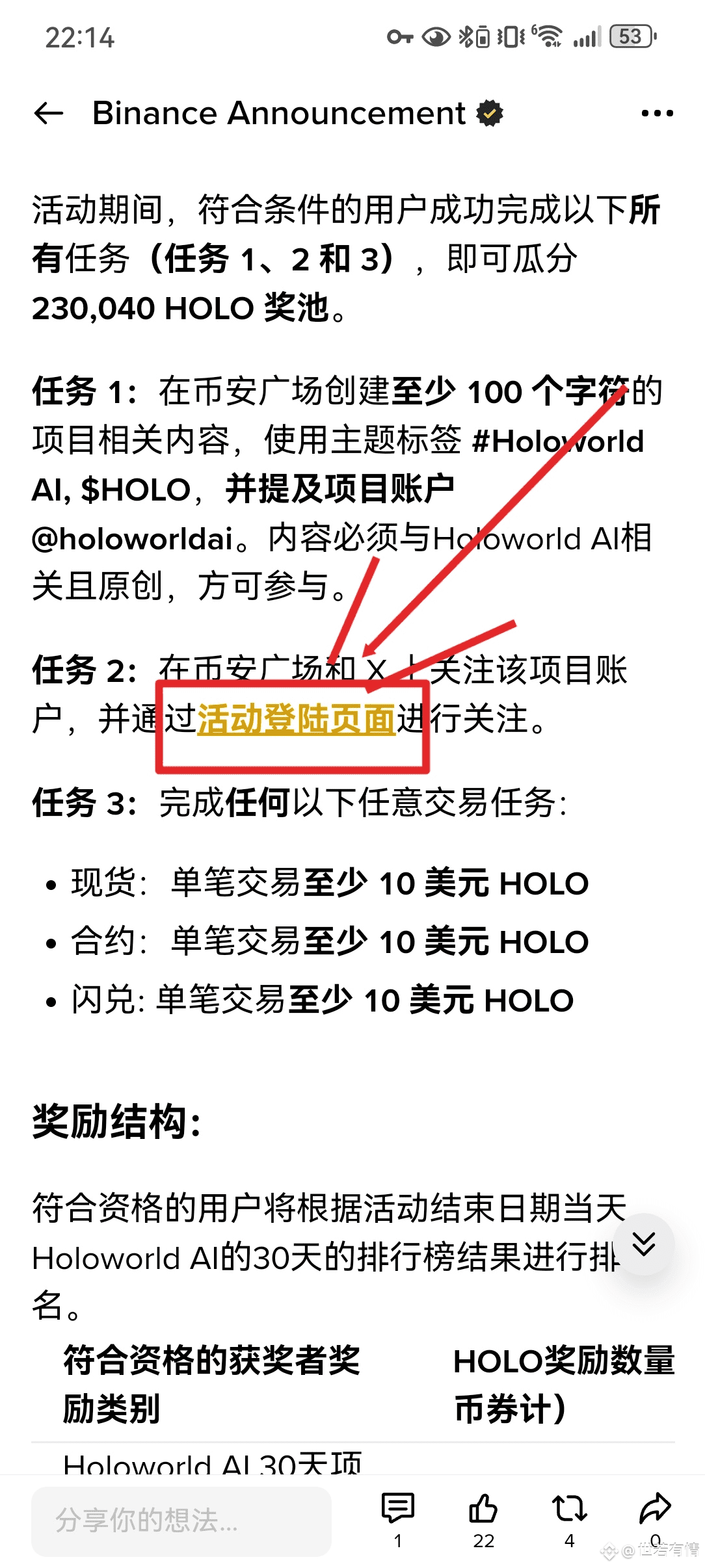 #HoloworldAl ,兄弟姐妹们啊,币安大大又来撒钱了 ,任务超级简单,只要币安广场关注和推特关注,然后现货,闪兑和合约各交易10美元的$HOLO @HoloworldAI 。然后广场写100字以上文章发布就能分钱。不积跬步无以至千里,不积小河无以至江海!文字再小也是肉,搞起来。$HOLO