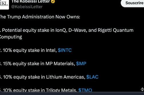 🇺🇸 Правительство США теперь владеет долями в самых важных артериях будущего — от литиевых шахт до лабораторий квантовых вычислений, от полупроводниковых фабрик до заводов по производству чипов ИИ.