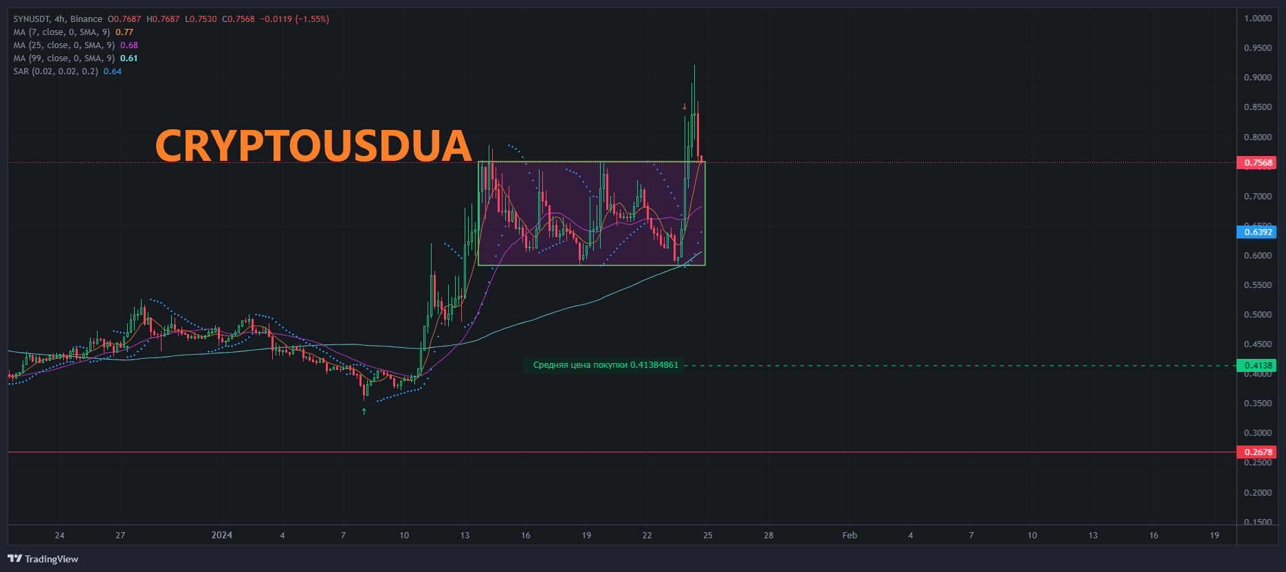 🔸 Цена: SYN, которая в настоящее время составляет 0,83 доллара, за последние 7 дней продемонстрировала восходящий тренд, увеличившись на 43,57% с минимума 7 дней в 0,58 доллара.