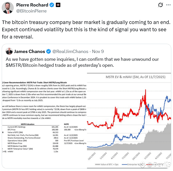 While MSTR may still experience more mNAV compression, particularly if it issues more common equity, “the thesis has largely played out,” Chanos said.“This is the kind of signal you want to see for a reversal,” said Rochard.