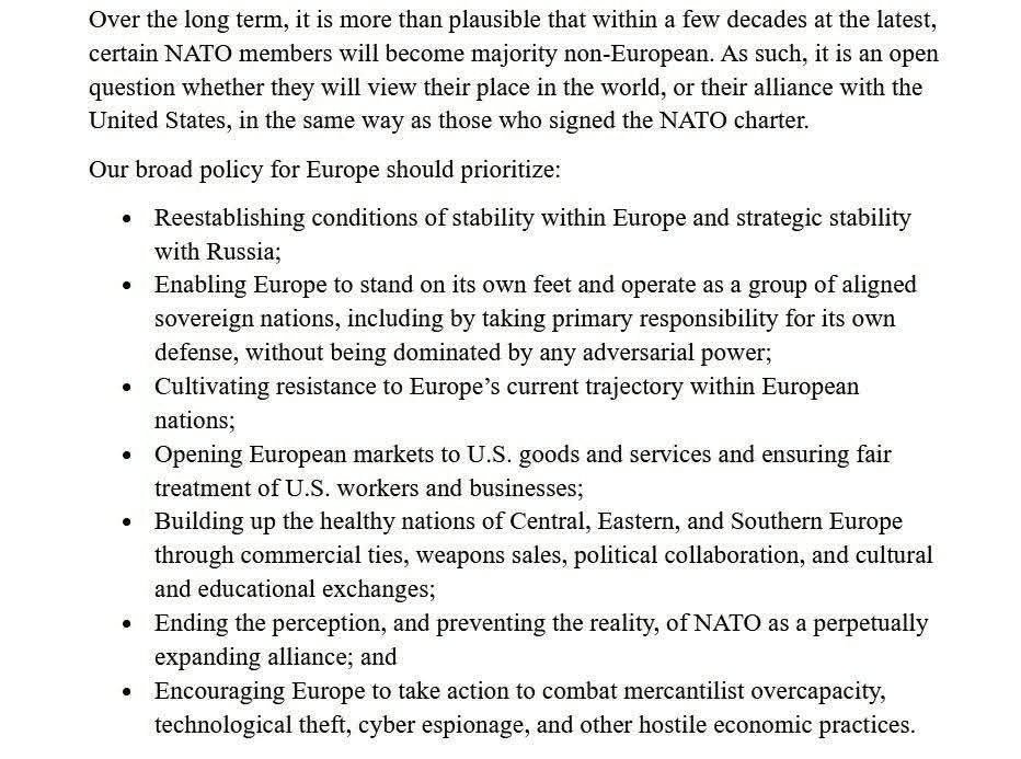 ●Новая национальная стратегия США описывает Европу уже не как партнера, а как «риск».