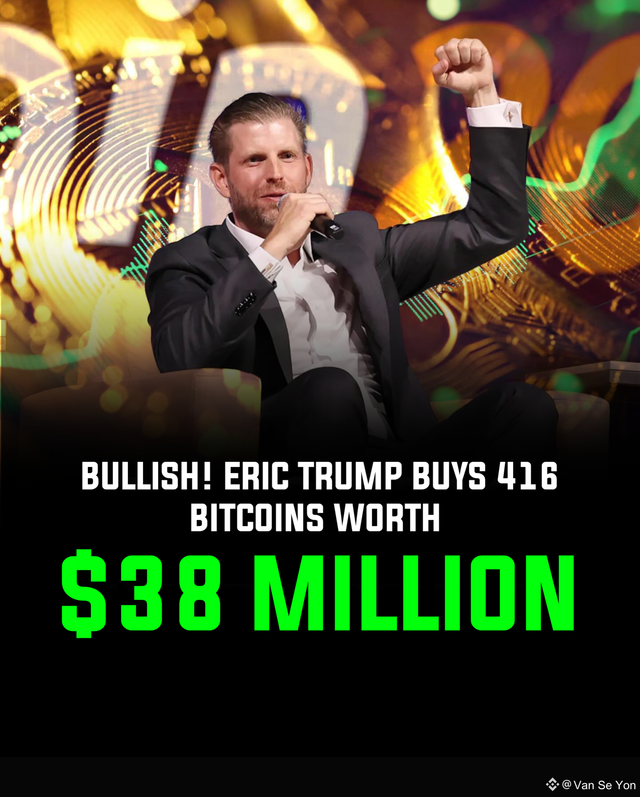 Eric Trump, through his digital asset investment company American Bitcoin Corp, has officially announced the acquisition of an additional 416 Bitcoins worth approximately $38 million USD.