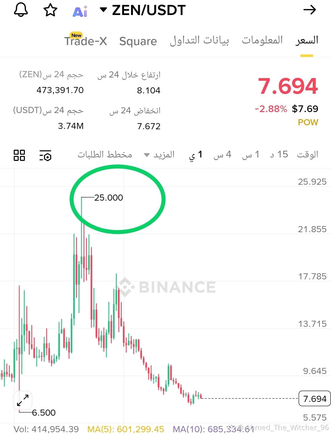 Например, $ZEN достигла 25.000$, я точно знаю, что она упадет, и валюта достигла своей цели