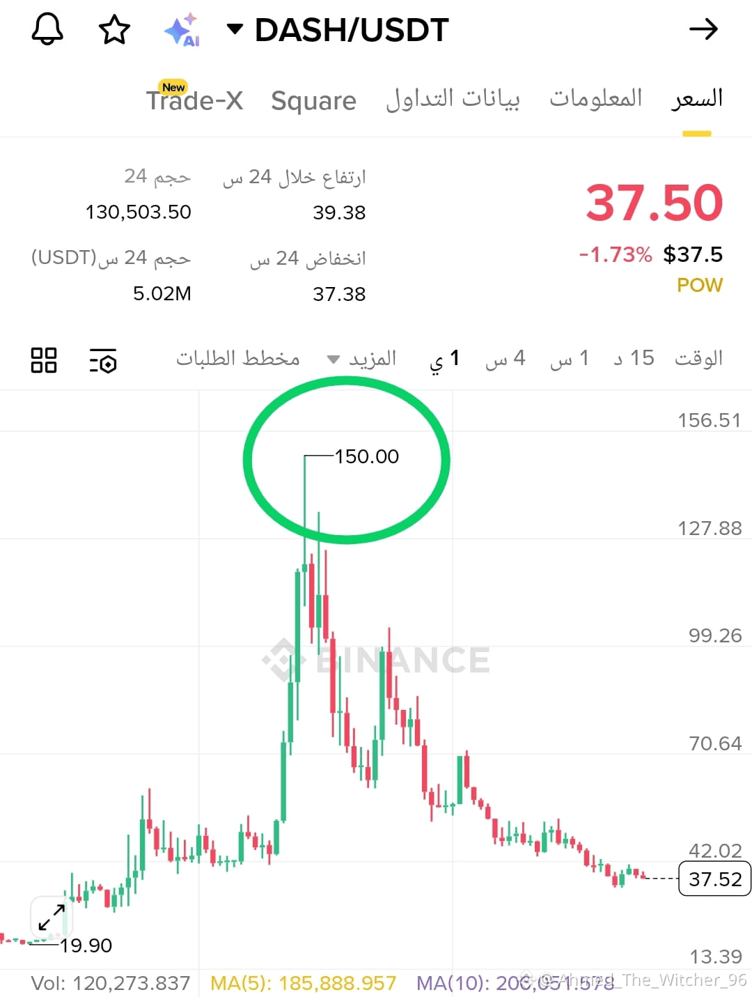 Валюта $DASH также упала с чистой цены без дробей на уровне 150.000