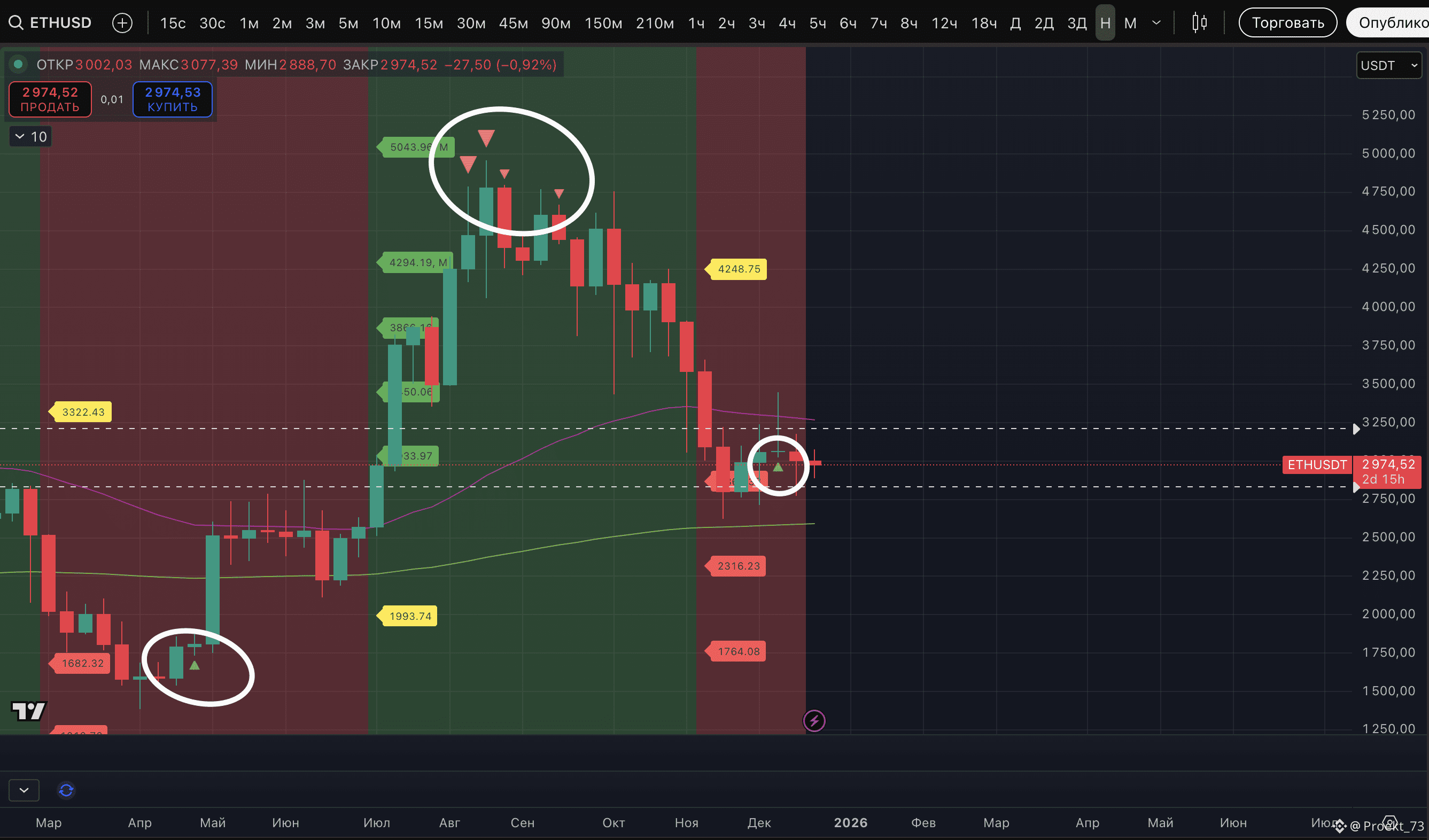 Но две недели назад у актива снова была метка потенциального лоя на недельном ТФ. Как в конце апреля. И пока лой ноября не переписан - мы в сценарии разворота и в зоне по #ETH, которую стоит активно откупать на среднесрок. Это основная и безальтернативная версия, пока цена не сломает ее снижением и закреплением под 2 623$.