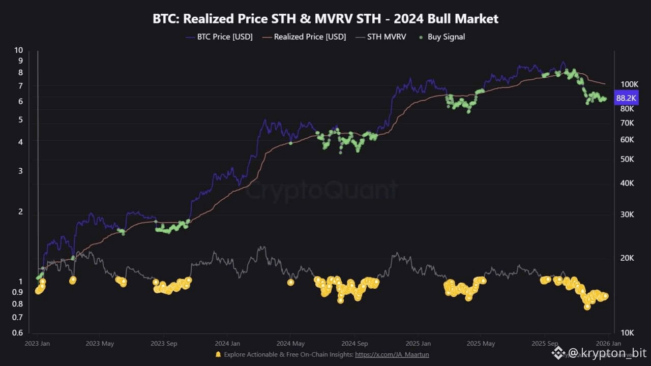 Дополнительно стоит учитывать, что биткоин все еще торгуется ниже реализованной цены краткосрочных держателей. Это означает, что большинство недавних покупателей находятся в убытке, что психологически усиливает давление, но исторически нередко совпадает с зонами накопления(перераспределения).