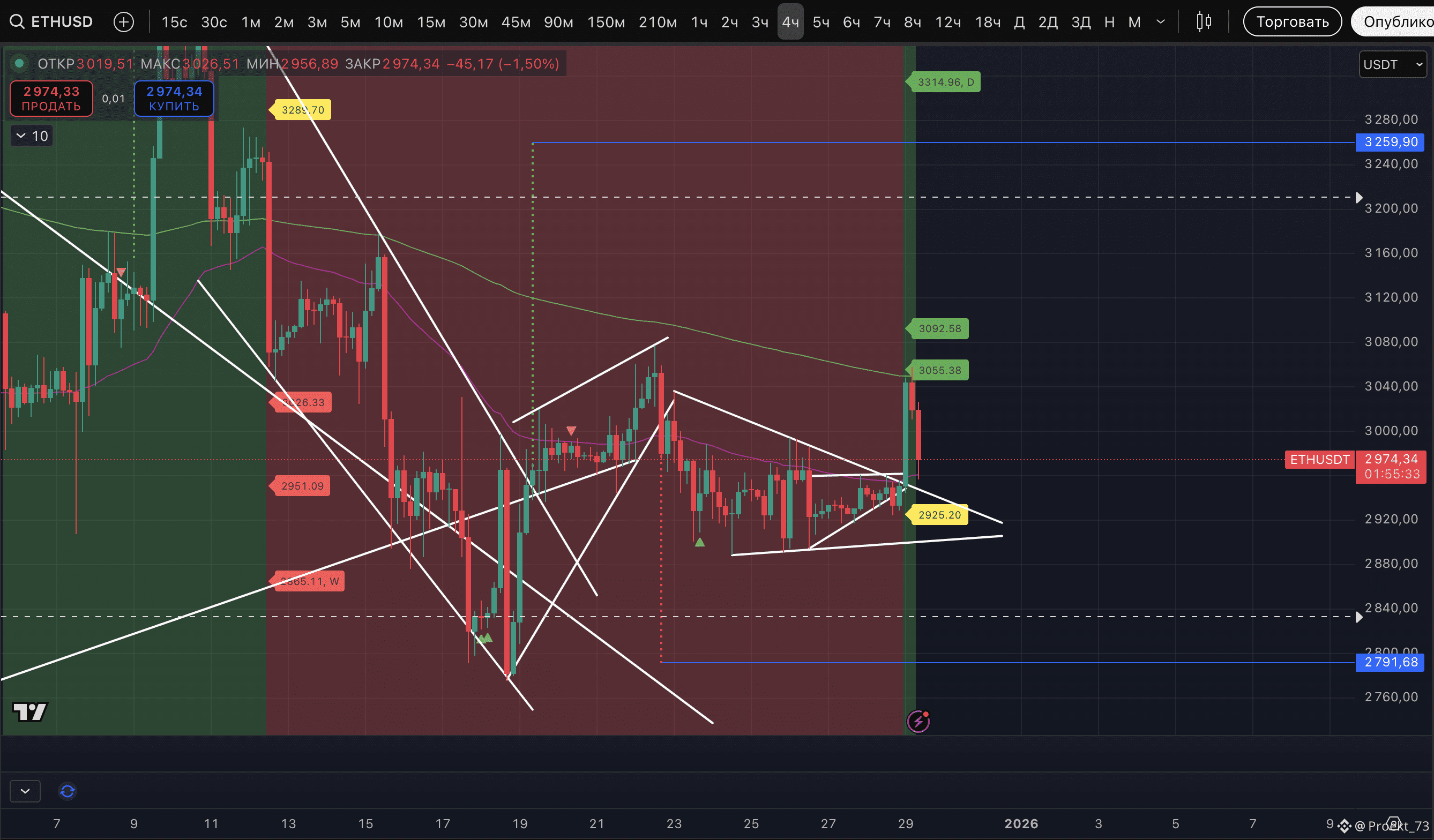 По ETH мы на этом росте нарастили свою лонг-позицию и средний уровень входа теперь - 3 002,66$. В сделке теперь 2/3 объема. Цена входа стала чуть менее выгодной, но при этом уверенности в сценарие роста стала больше.