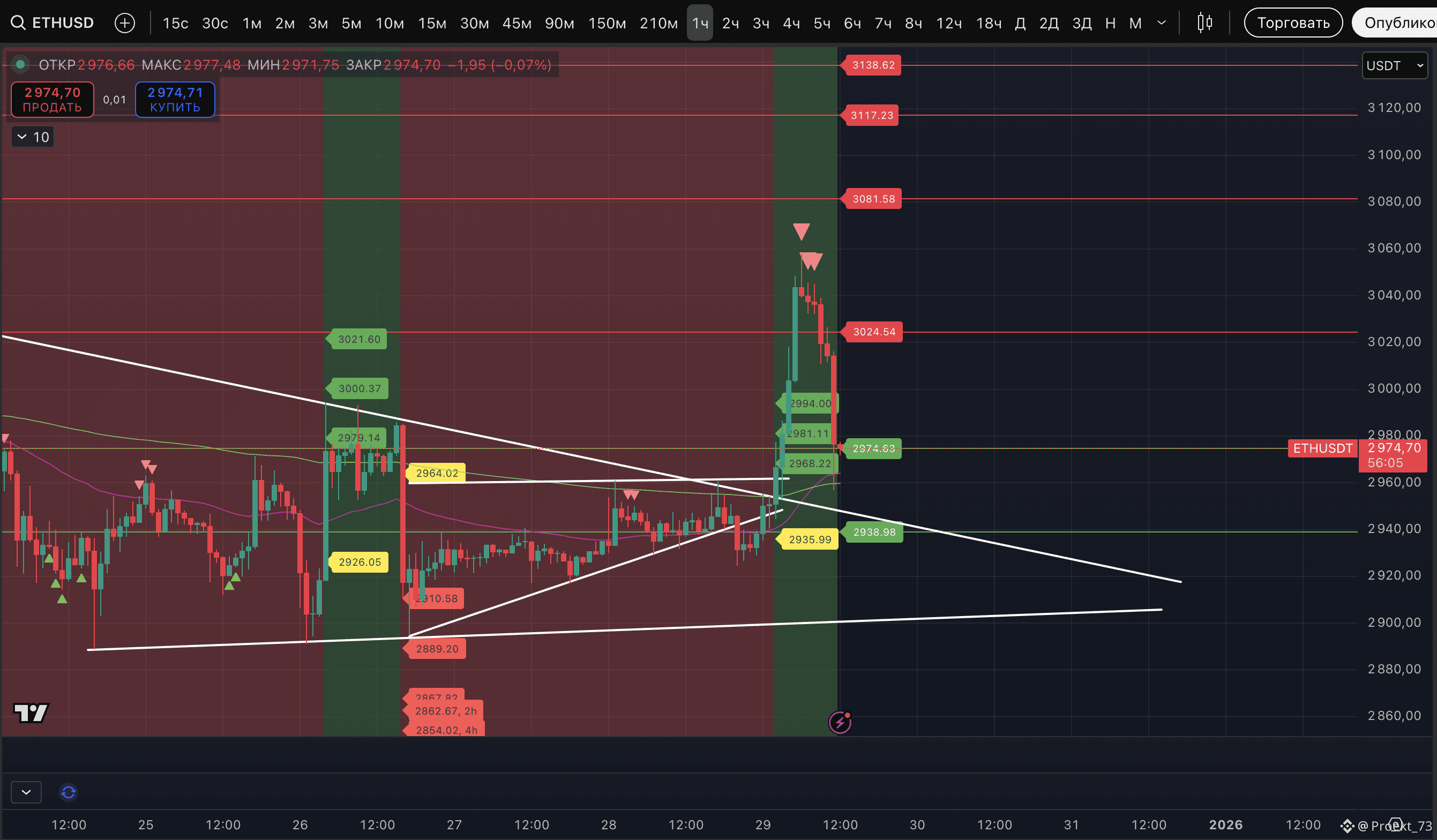 Текущие итоги ночного пампа BTC и ETH. Как видим, Strong signal потенциального хая на часовом ТФ в очередной раз четко отработали коррекцией.