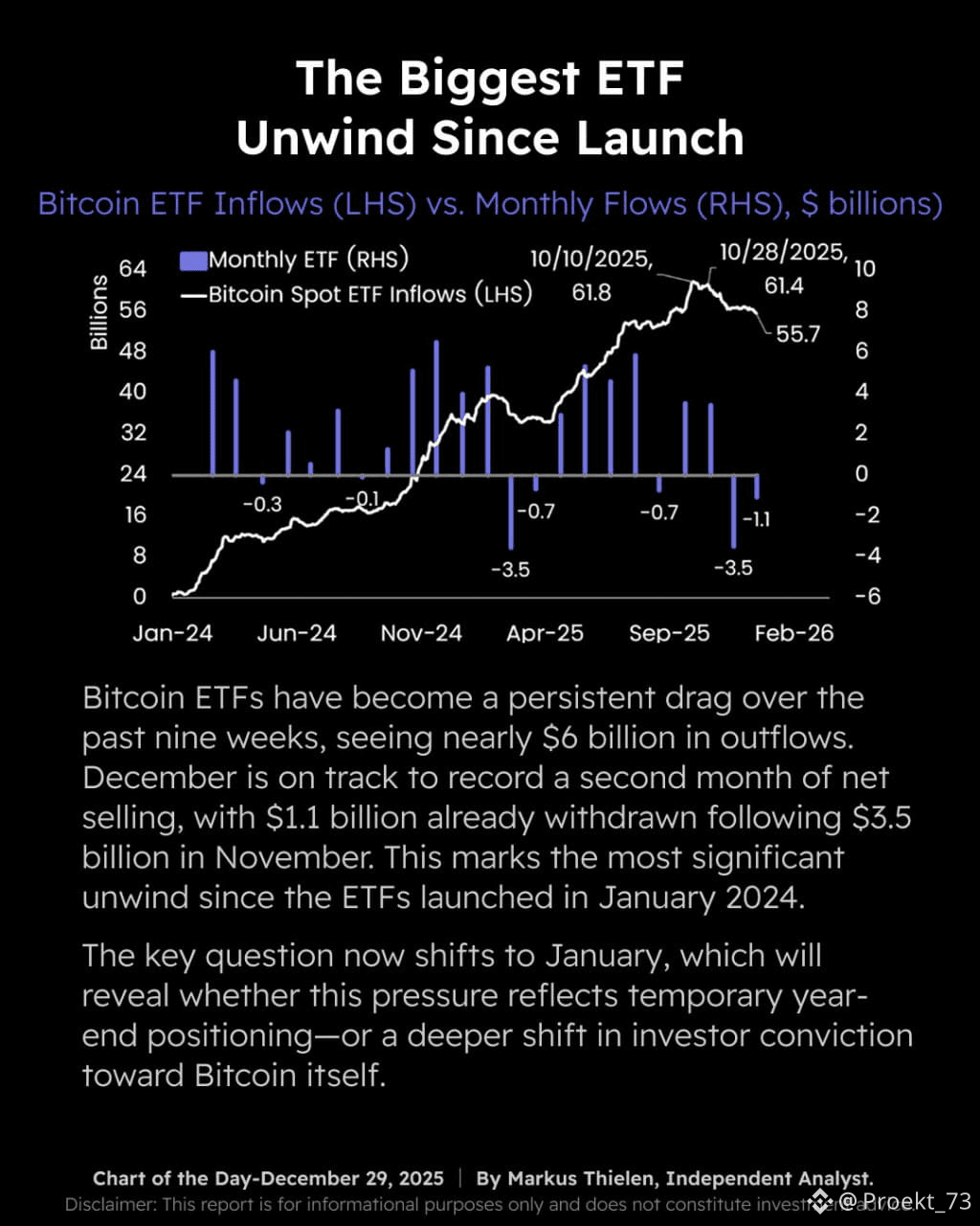 ETF стали устойчивым фактором давления на рынок. Речь уже не о разовых фиксациях. Оттоки идут системно, месяц за месяцем, и оказывают прямое давление на спотовую цену BTC.