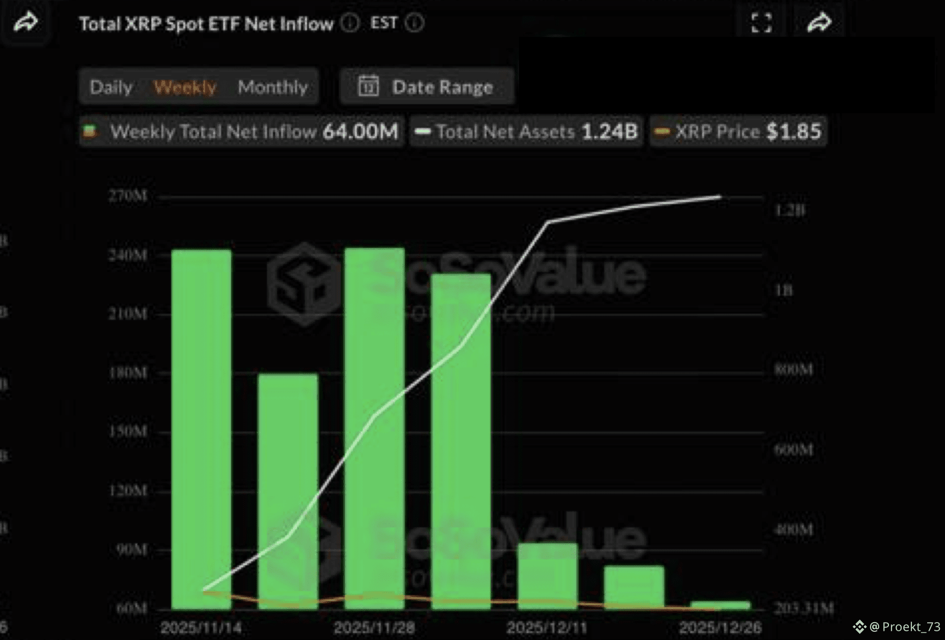 Также добавим, что по данным #SosoValue общие финансовые потоки за прошлую неделю по крипто-ETF выглядят так: