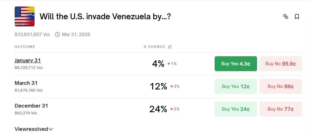 Подобная ситуация произошла на фоне недавней ситуации с Венесуэлой. Полик отказался платить тем, кто поставил на вторжение США. В их объяснении, захват президента чужой страны в этой же стране - не есть вторжение в чужую страну. Нужен именно установленный контроль над территорией