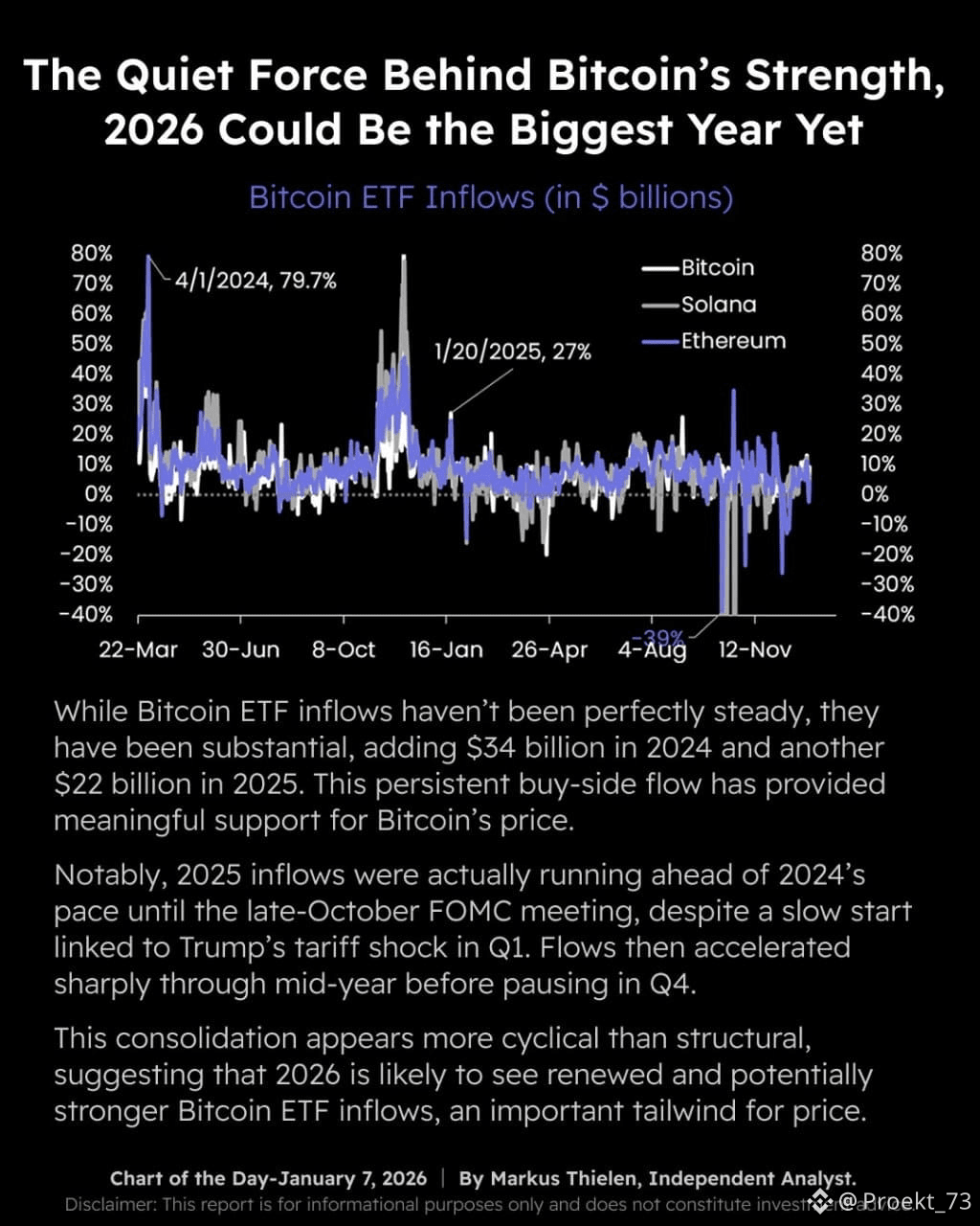 В #Matrixport акцентируют на том, что для #BTC тихий драйвер силы - это притоки в Bitcoin ETF. И 2026 может дать продолжение.