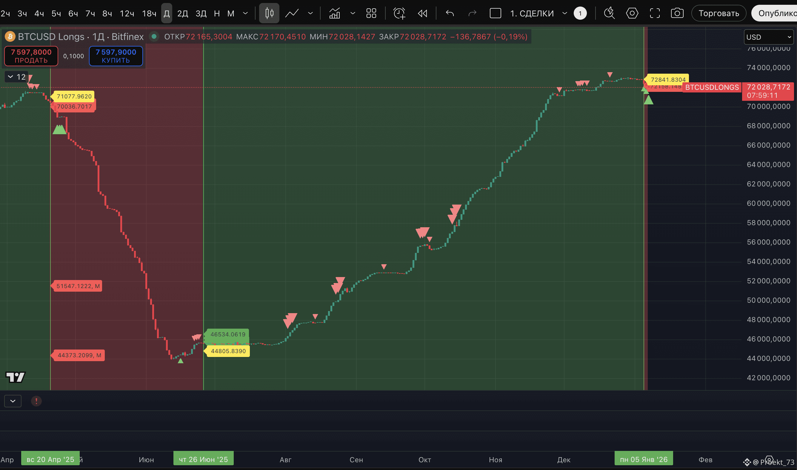 Напомним, что по тикеру на Trading View BTCUSDLONGS можно удобно следить за тем, как игроки на #Bitfinex набирают и сбрасывают лонги. Набирают они их по мере падения актива и разгружают - по мере роста. Там видна выраженная обратная корреляция с ценой #BTC и это - типичное поведение "умных денег". Которые разгружают лонги в толпу в тот момент, когда толпа активно покупает и толкает цену вверх. Чтобы получить свои большие прибыли - им нужен устойчивый спрос. Поэтому сброс лонгов на Bitfinex - это как раз позитив для перспектив роста. А набор там лонгов - негатив.