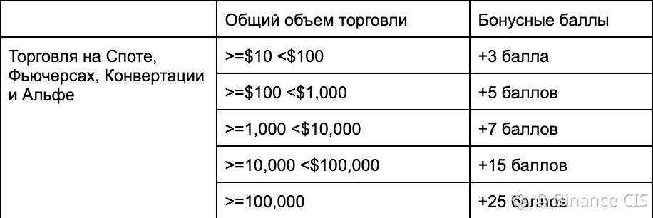 Вы можете получить до 25 баллов в день за каждый проект от эффективной торговли, которую вы совершили на бирже Binance (Web3-кошелек исключается).