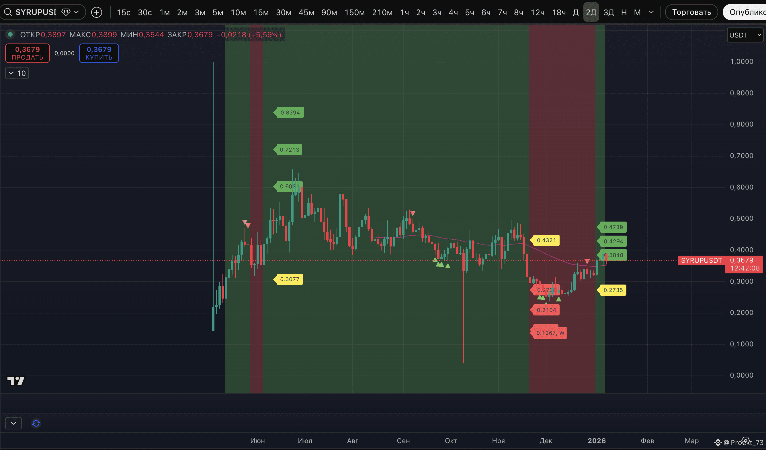 - #SYRUP. С еще не отработавшими базовыми целями 0,4294$, 0,4739$.