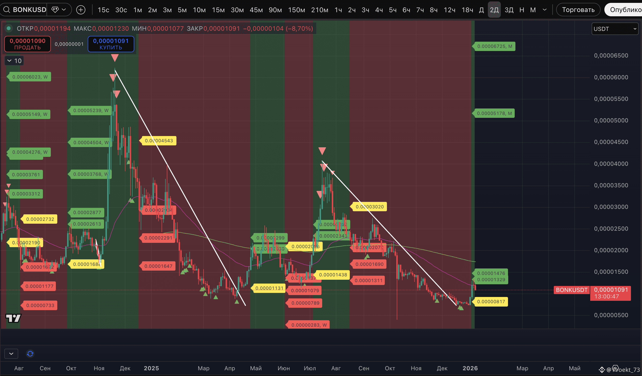 - #BONK. Крайняя базовая цель - 0,00001476$.