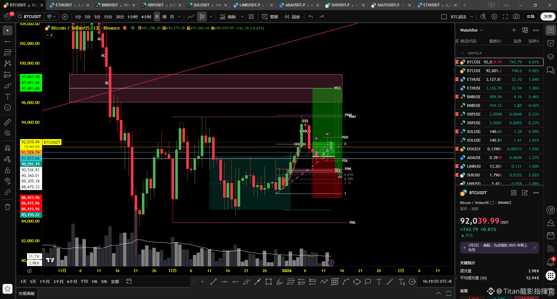 在價格未正式回測 1 月 1 日上漲 FVG 之前,會選擇繼續觀察。