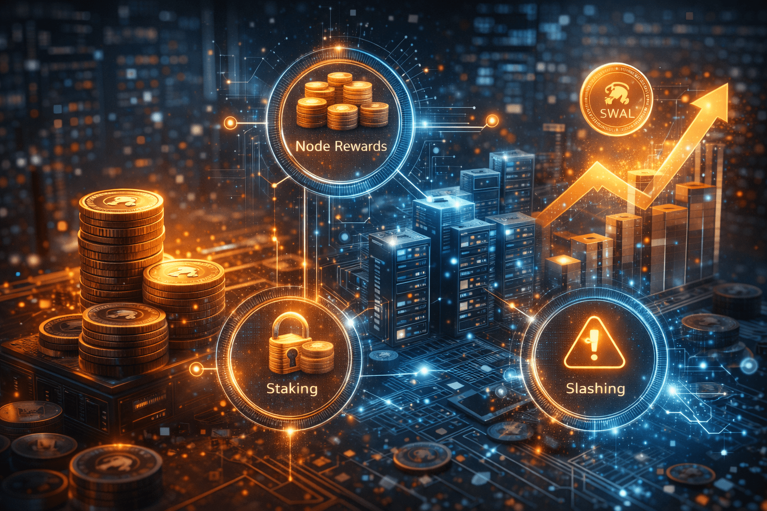 Третий компонент — вознаграждения за стейкинг. Операторы нод должны застейкать определенное количество токенов $WAL в качестве гарантии добросовестного поведения. Эти застейканные токены генерируют дополнительный доход через механизм вознаграждений, формируемый частично за счет инфляции протокола и частично за счет комиссий за транзакции. Важно, что размер вознаграждений за стейкинг настраивается таким образом, чтобы стимулировать участие достаточного количества нод для обеспечения децентрализации, но не создавать чрезмерную инфляцию, которая бы обесценивала токен. Четвертый компонент — штрафы за недобросовестное поведение. Если нода систематически не обеспечивает доступность данных или пытается манипулировать системой, часть ее застейканных токенов конфискуется, что создает экономический сдерживающий фактор против злоупотреблений.