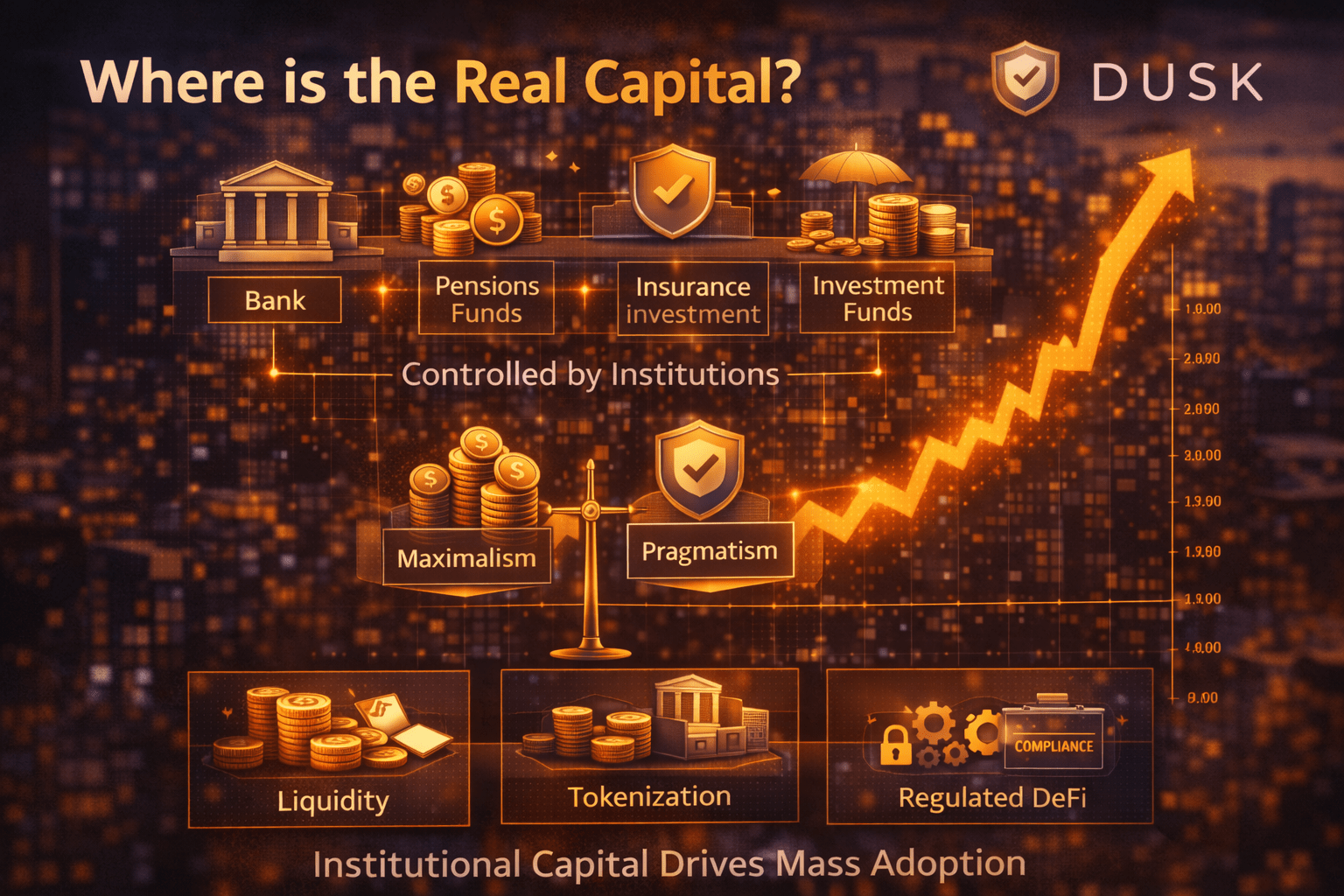 Когда @Dusk говорит, что нацелен на институциональных клиентов, я часто в комментариях вижу что-то вроде «вот, продались», «забыли про децентрализацию», «теперь они такие же, как банки». Но честно? Этот максимализм меня раздражает. Давайте разберёмся, почему фокус на институциях — это нормально и даже необходимо для $DUSK .