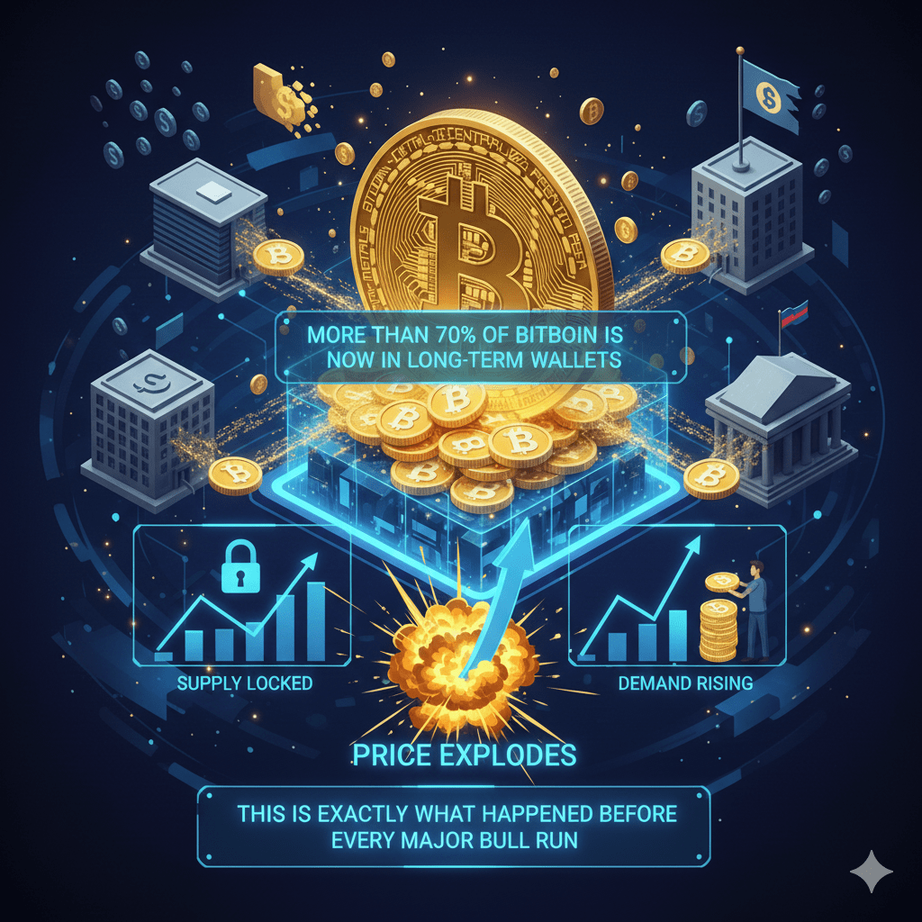 Более 70% $BTC сейчас находится в долгосрочных кошельках.