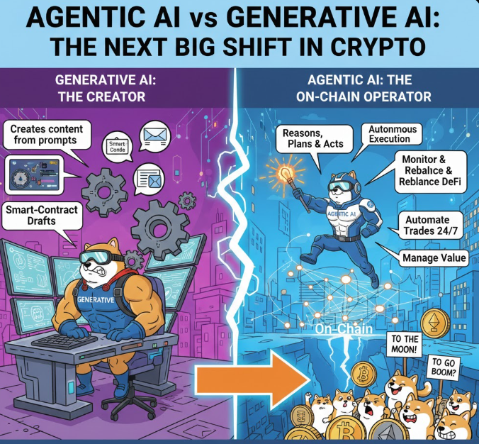 🚀 Агентный ИИ против Генеративного ИИ — следующий большой сдвиг в ИИ и криптовалюте