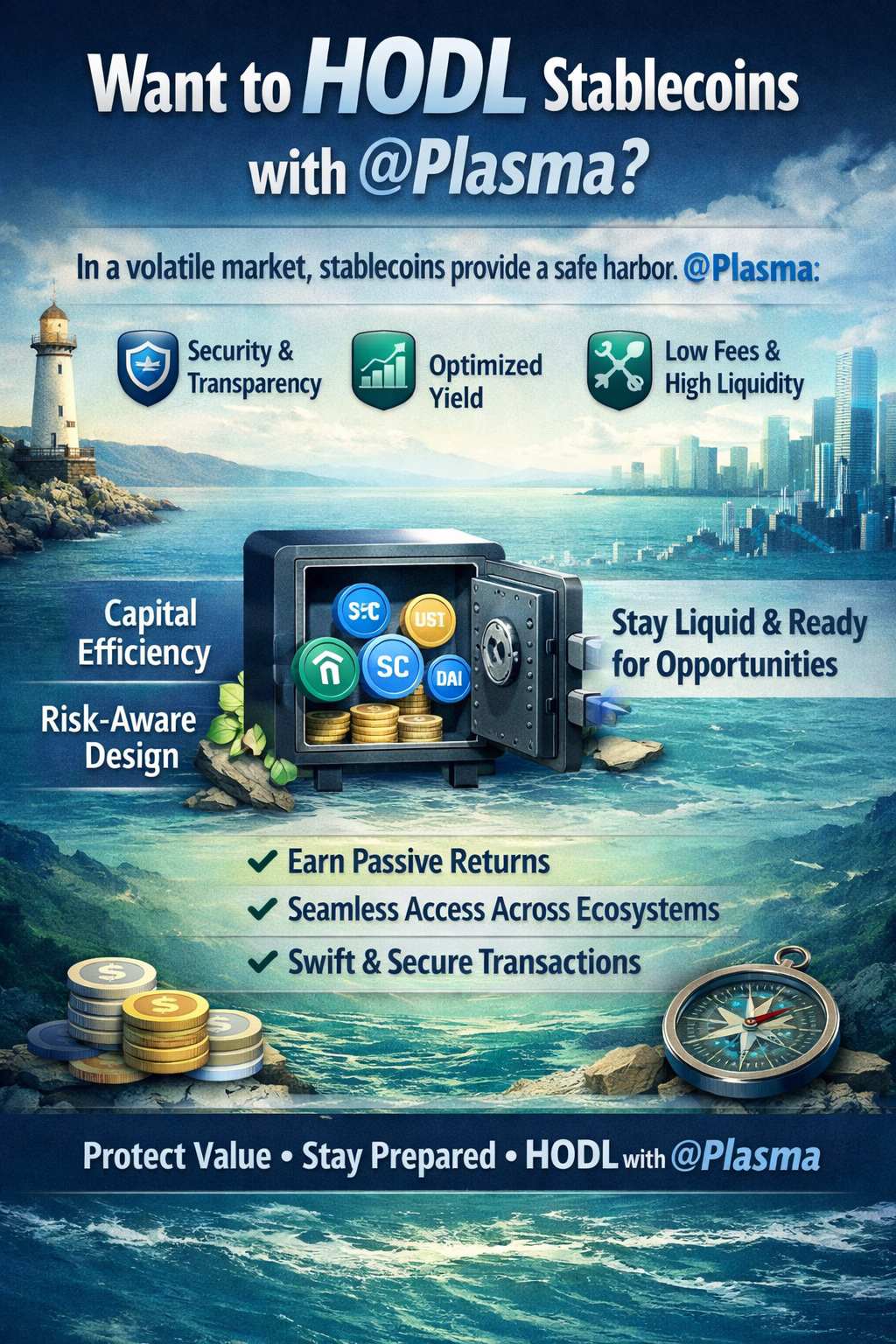 На волатильном крипторынке стейблкоины предлагают спокойную гавань — и @Plasma создан для того, чтобы сделать их удержание более умным, безопасным и эффективным. Независимо от того, паркуете ли вы капитал между сделками или сохраняете стоимость на долгий срок, Plasma сосредоточена на надежности, прозрачности и инфраструктуре с учетом доходности. С оптимизированной маршрутизацией ликвидности и дизайном с учетом рисков Plasma помогает держателям стейблкоинов избегать ненужного воздействия, оставаясь готовыми развернуть средства, когда возникают возможности.