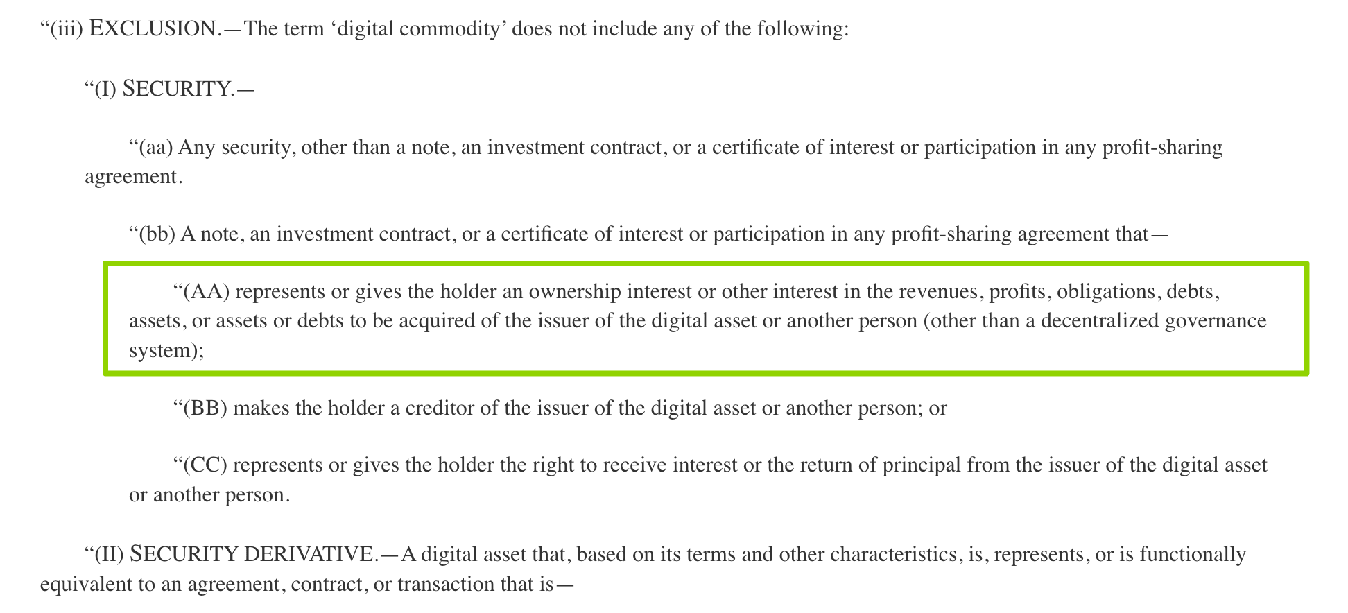 核心条款在定义“数字商品”时,严格排除了任何代表所有权、利润或债权的资产。