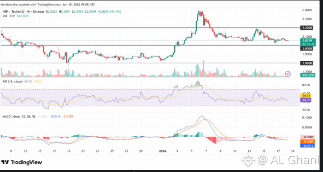 Additionally, flat histogram bars confirm the absence of a strong directional trend. On the downside, immediate support lies near $2.00, a level that has been tested multiple times in recent sessions, making it a critical area to watch for XRP’s next move.