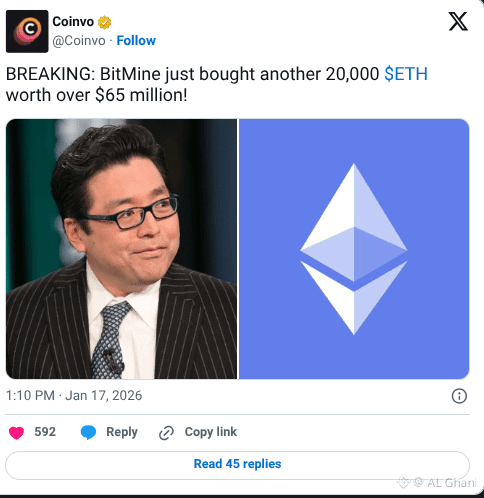 Institutional interest in Ethereum remains strong, as evidenced by increasing whale accumulation, a sign of growing confidence in the asset’s long-term outlook. Adding to this trend, BitMine recently acquired 20,000 ETH worth over $65 million, signaling aggressive buying activity and reinforcing bullish sentiment around Ethereum.