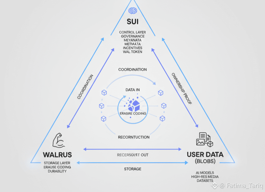 Walrus was introduced publicly by Mysten Labs in mid‑2024 as a decentralized storage and data availability protocol purpose‑built for large binary objects, or “blobs.” Rather than creating a new blockchain to coordinate storage behavior, Walrus uses Sui as its control layer, relying on Sui for lifecycle management, governance, and incentive coordination while focusing engineering effort on the storage network itself. This architectural separation is significant because it treats storage as a specialized system rather than forcing it to inherit the constraints of a general‑purpose execution layer.