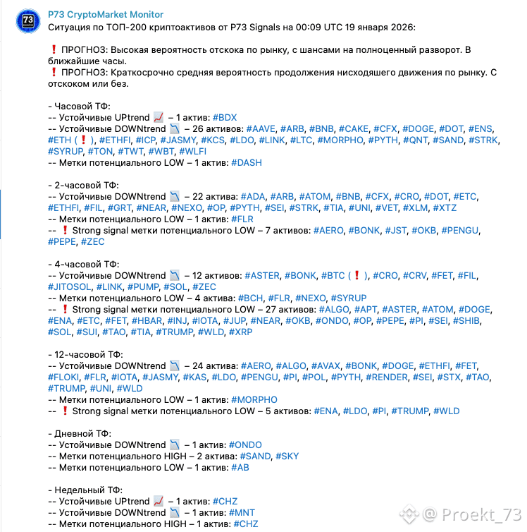Речь и о полном отчете сигналов нашего индикатора по ТОП-200 криптоактивов, на всех отслеживаемых ТФ, где были открыты новые свечи в этом часе: часовой, 2-часовой, 4-часовой, 12-часовой, дневной, недельный. Активы, которые показывают Strong signal потенциального лоя на 4- и особенно 12-часовом ТФ - это, считаем, кандидаты на хороший и мощный отскок. Главное дождаться трех меток и/или подтверждения старта отскока. Вот эти кандидаты: