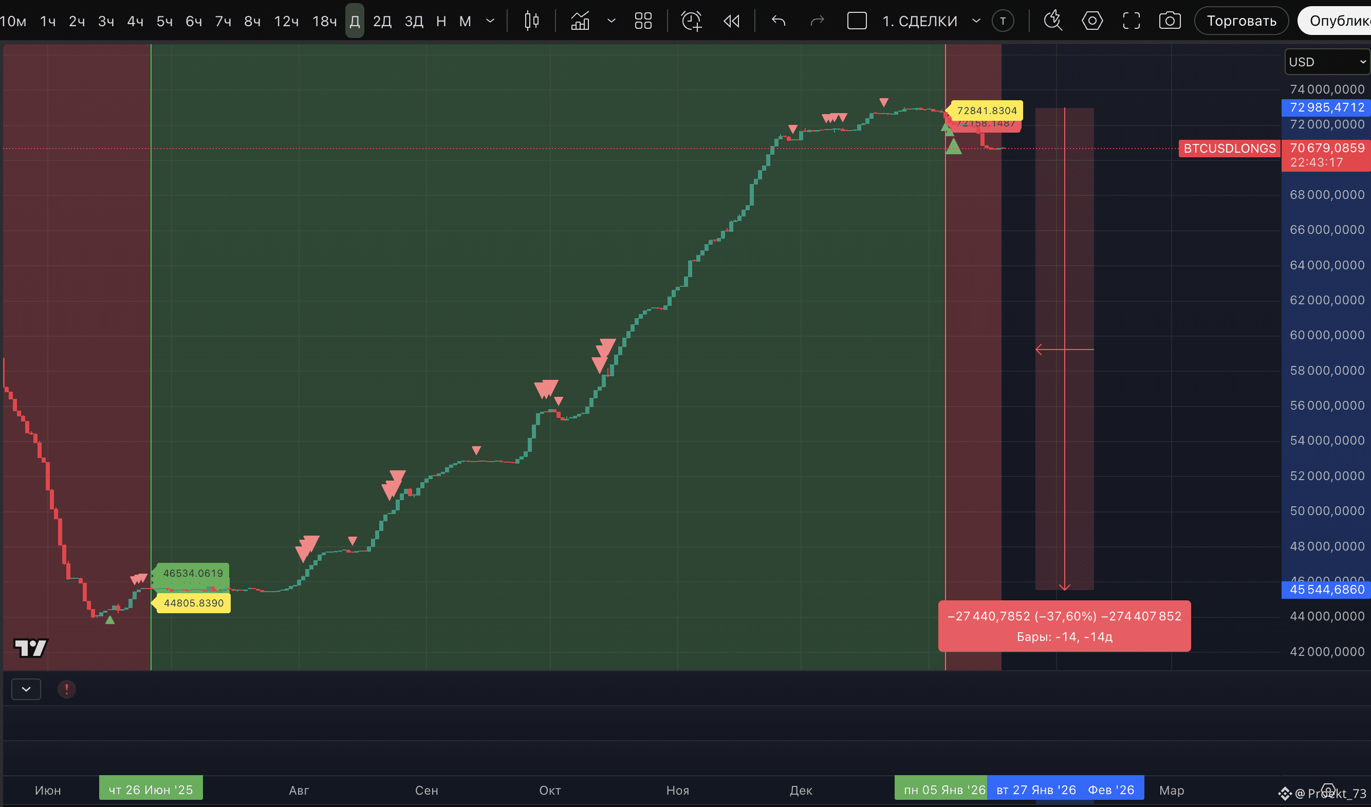 - когда лонги начинают набирать и они уходят в устойчивый аптренд - #BTC начинает падать.