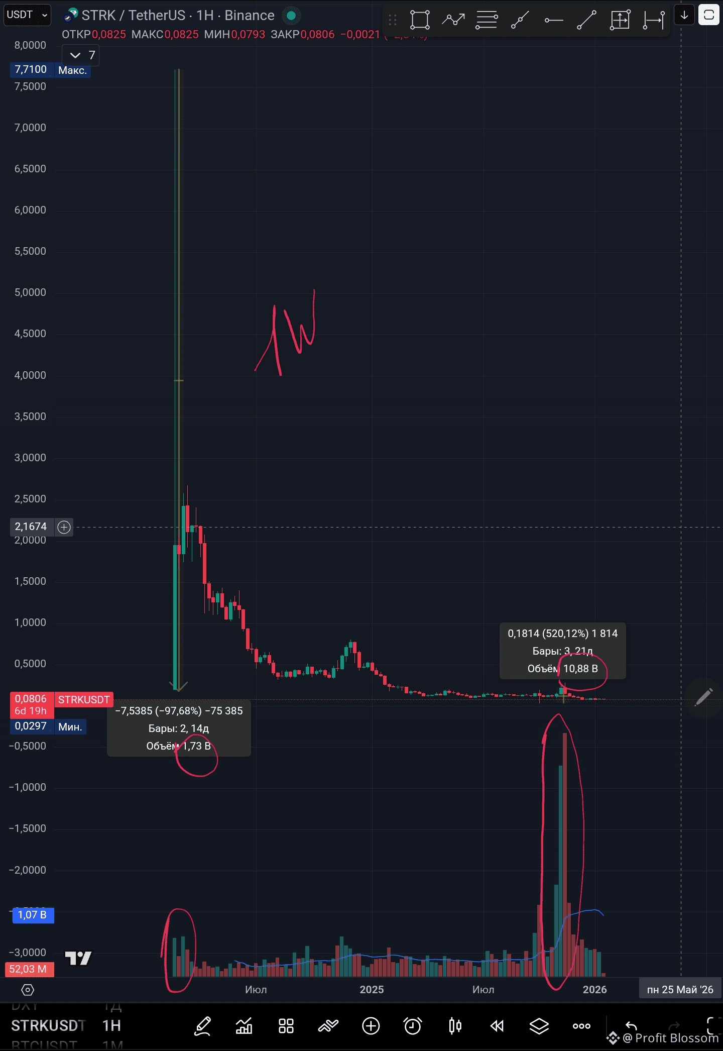 Сразу могу сказать, что данные активы я боюсь как огня 😄, но в ноябре прошлого года мы видим какие-то очень сильные движения объемов, которых не было с начала жизни данной монеты на платформе binance.