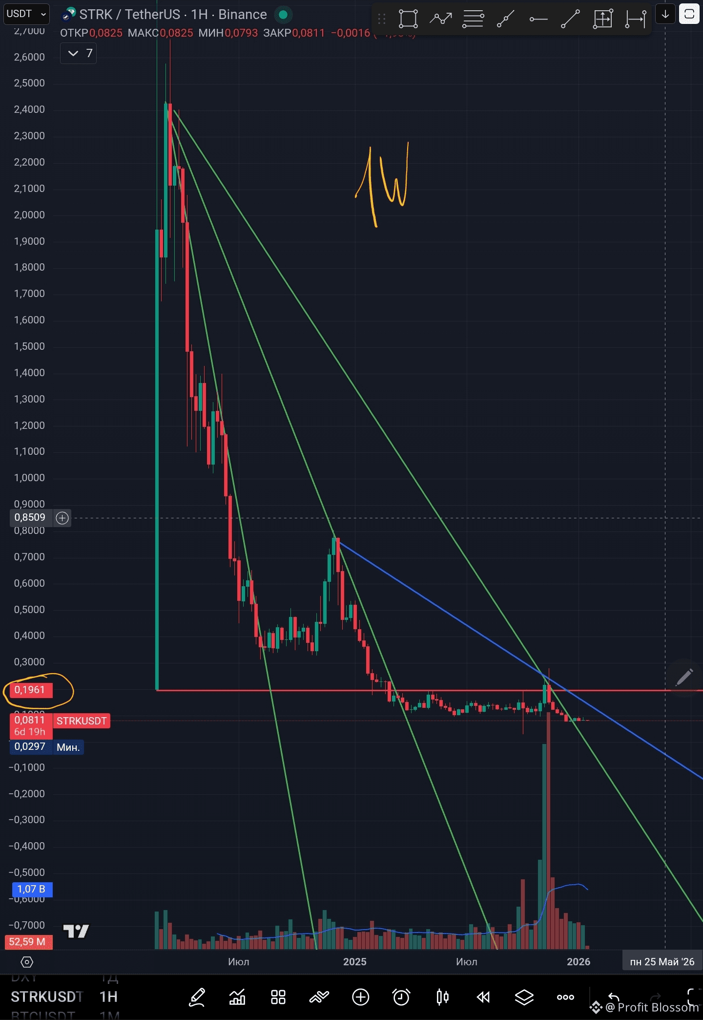 Монета на данный момент торгуется ниже минимума своего начала