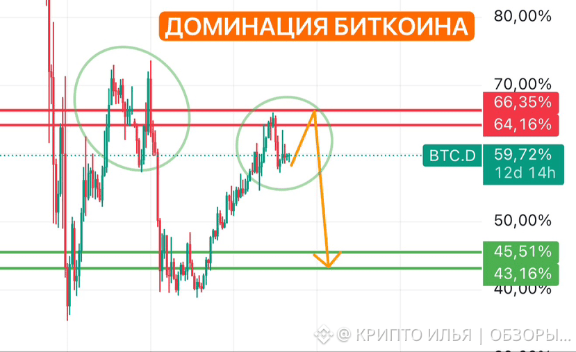 📈Как и на всех альткоинах - локальный график выглядит печально. Согласно мат. модели, интересными уровнями для набора могут стать: ~0,456$ - 0,382$ или же факт прихода доминации биткоина на вторую вершину в зону ~64% - 66%…